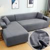 Grauer, einfarbiger, elastischer Stretch-Sofabezug. Sie müssen einen 2-teiligen Sofabezug bestellen, wenn L-Style-Sofabezug für Sofas mit Chaiselongue