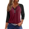 Damenmode Lässig Raglanärmel Colorblock V-Ausschnitt Dreiviertelarm Dekorativer Knopf T-Shirt Top