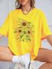 Sonnenblumen- und Schmetterlingsdruck Gewaschenes T-Shirt Damen Lässig Retro T-Shirts Baumwoll-Tees Kleidung Neu O-Ausschnitt Crop-Top