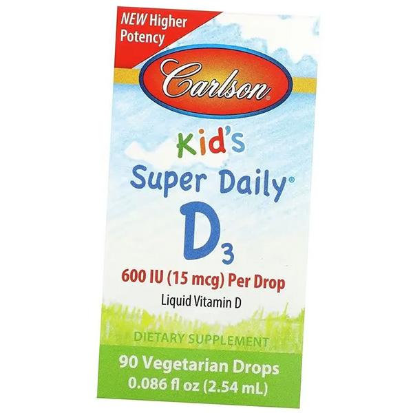 Витамин Д3 для детей, Kid's Super Daily D3 600, Carlson Labs 2мл (36353103)
