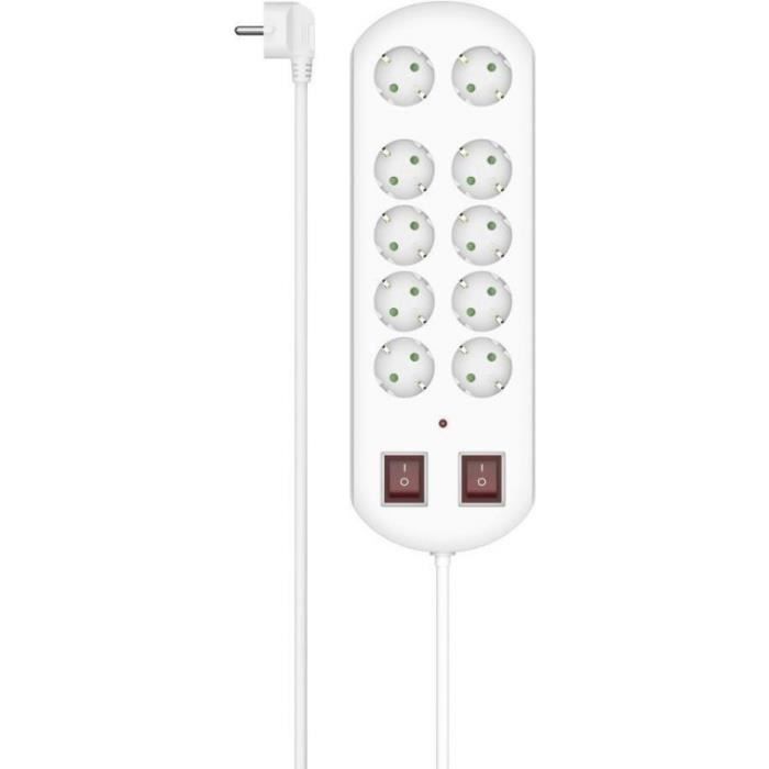 Multiprise - Hama - 10-fach - Protection contre les surtensions - 2 m - Blanc