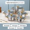 Goldfarbenes Edelstahl 10-teiliges Kochgeschirrset: Mehrzweck-Suppentopf- & Stieltopf-Geschenkset
