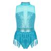Mädchen Glitzernde Pailletten Quasten Tanzbody Ärmellos Schlüsselloch Rücken Patchwork Fransen Body Performance Kostüm