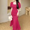 ZANZEA Damen Elegantes Lässiges Quadratischer Kragen Kurzarm Fishtail Kleid