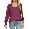 Damen Oberteile Langarmshirt V-Ausschnitt Lässiges Lockeres T-Shirt Tops
