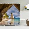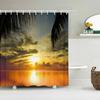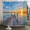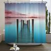 Meereslandschaft 3D-gedruckter Polyester-Duschvorhang Holzbrücke Naturstoff Wasserdichter Badezimmervorhang für Badewanne 180x180