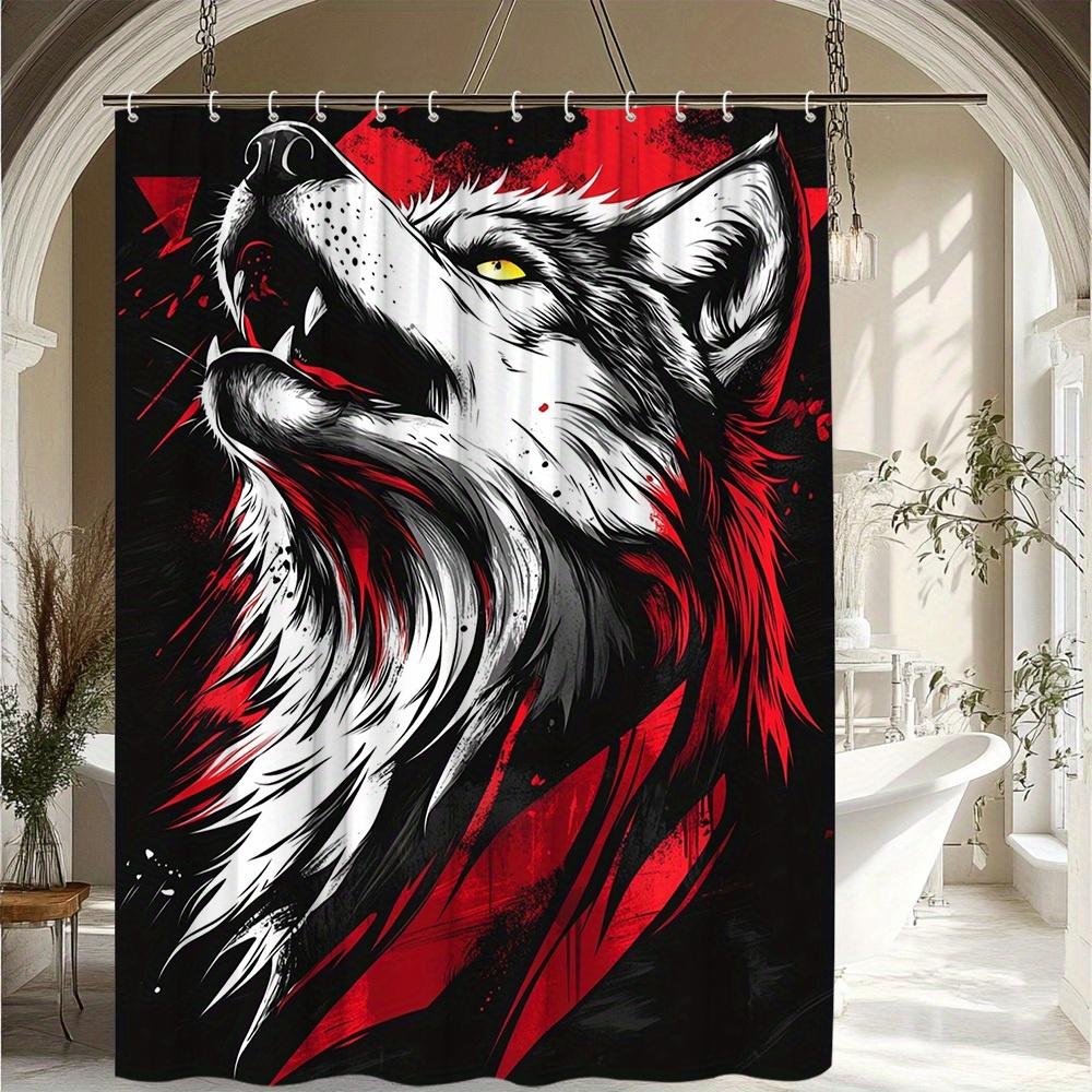 1 Stück Einzigartige Kreative Wolfsmuster Duschvorhang Lebendig Und Lustig Wilder Stil Badezimmerdekoration Polyestergewebe Enthält 12 Haken