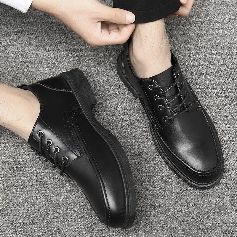 Schwarze Plateau Herren Lederschuhe Runde Spitze Klassisch Original Hohe Qualität Mode 2025 Luxus Sale Designer Herren Freizeitschuh