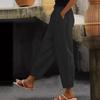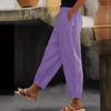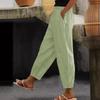 Damen Baumwolle Leinen Einfarbig Elastischer Bund Freizeithose mit Seitentaschen, Geeignet für Frühling und Herbst