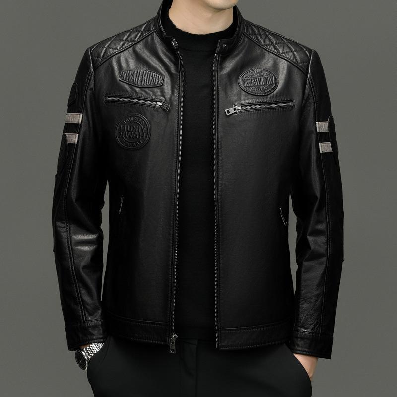 Leather leather jacket middle-aged fashion casual leather jacket autumn and winter new stand-up collar trend locomotive clothing cowhide jacket