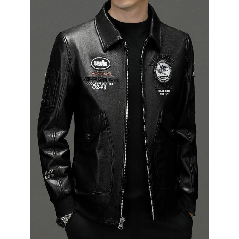 First layer cowhide leather jacket men's spring and autumn middle-aged and young people trend embroidered locomotive clothing leather jacket jacket
