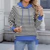 Damen Modischer Lässiger Gestreifter Kapuzenpullover mit Tasche Locker Langärmlig