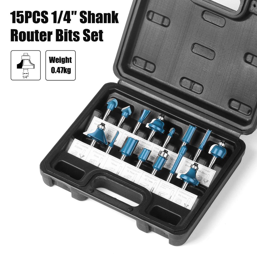 1/4 Schaft 15-teiliges Holzbearbeitungsfräser-Set Trimmerkopf Bakelit Nutfräser gerader Fräser Holzbearbeitungswerkzeug