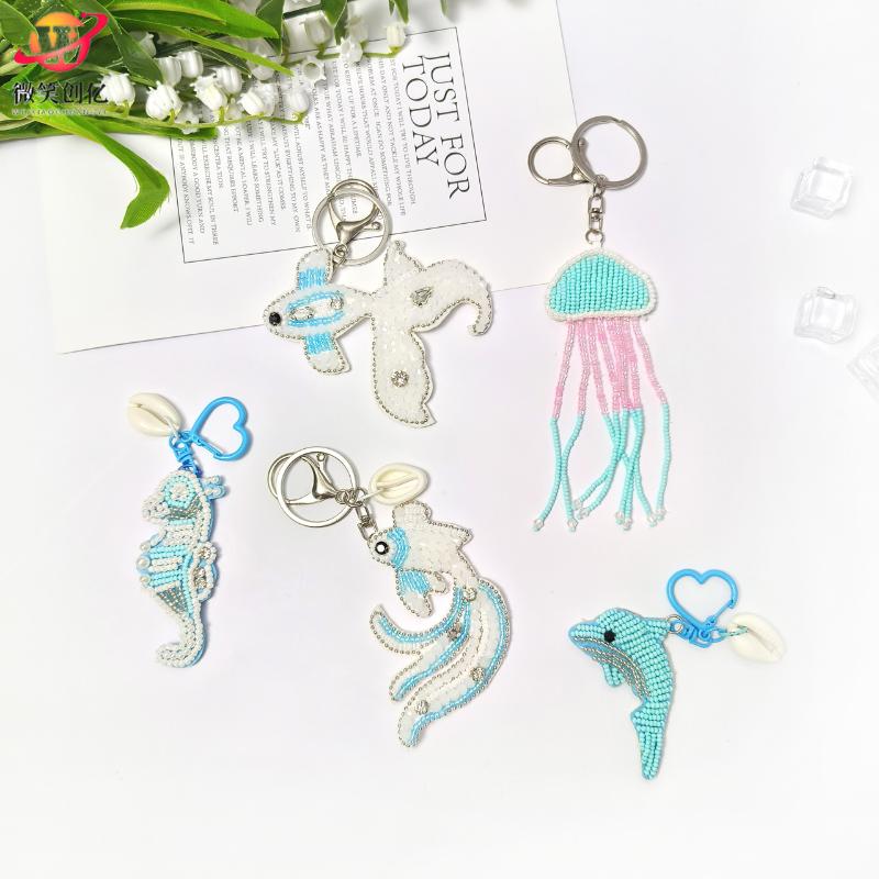 Rhinestone Beaded Bag Pendant Cute Handmade Beaded Keychain Creative Starfish Shell Dolphin Turtle Bag Accessories Diy Pendant