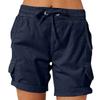 Women's Fashionable Solid Color Pocket Drawstring Casual Work Pants With Elastic Waist And Rolled Edge Five Quarter Shorts