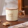 Einfache Katzentasse für Mädchen Niedliche Kreative Keramiktasse Becher mit Deckel Büro Internet-Berühmtheit Wasserbecher Paarbecher
