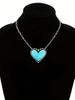 3tlg./Set Damen Böhmischer Vintage Stil Herz Türkis Anhänger Halskette Ohrringe Schmuckset Westernschmuck für Party Abschlussball Kleidung Geschenke