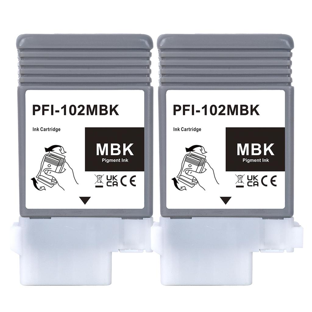 LCL Compatible Canon Pigment Ink Cartridges Matte for imagePROGRAF and PFI-102 PFI-102MBK (2-Pack Black) iPF655, iPF650, iPF755, iPF750, iPF510,