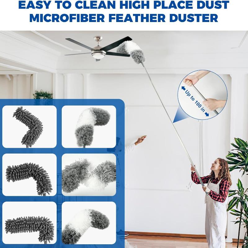 2.8M Duster Brush Microfiber Duster Extendable Curved Ceiling Cleaning Broom Household Electrostatic Dust Collector