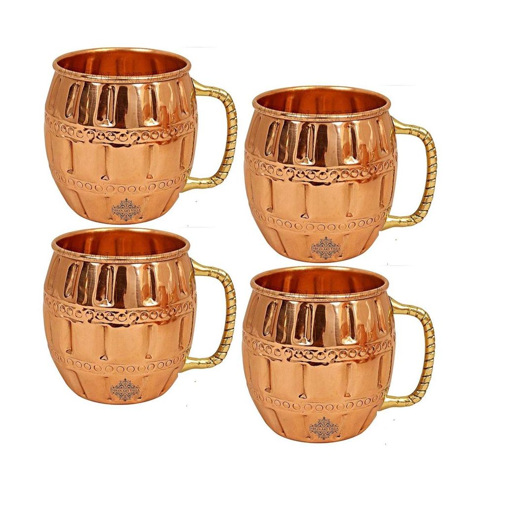 Reiner Kupfer Rundförmiges Fassdesign Moscow Mule Bierkrug Tasse, Am besten für Bier-Cocktailpartys, Barzubehör, Volumen-600ML, 4er-Set