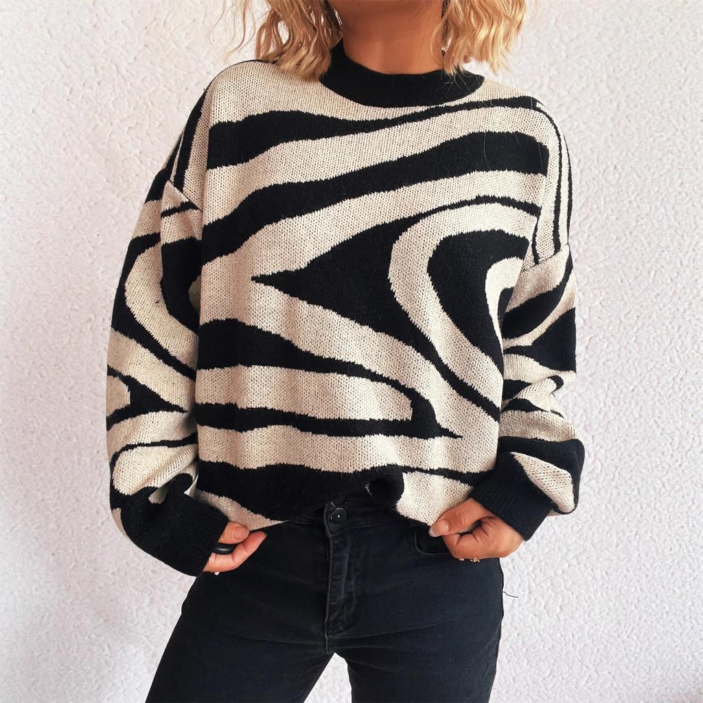Damen Pullover 2025 Neue Farbe Color Block Zebra Muster Damen Pullover Rundhals Modisch Chic Gestrickter Pullover Lässiger Pullover CR4368