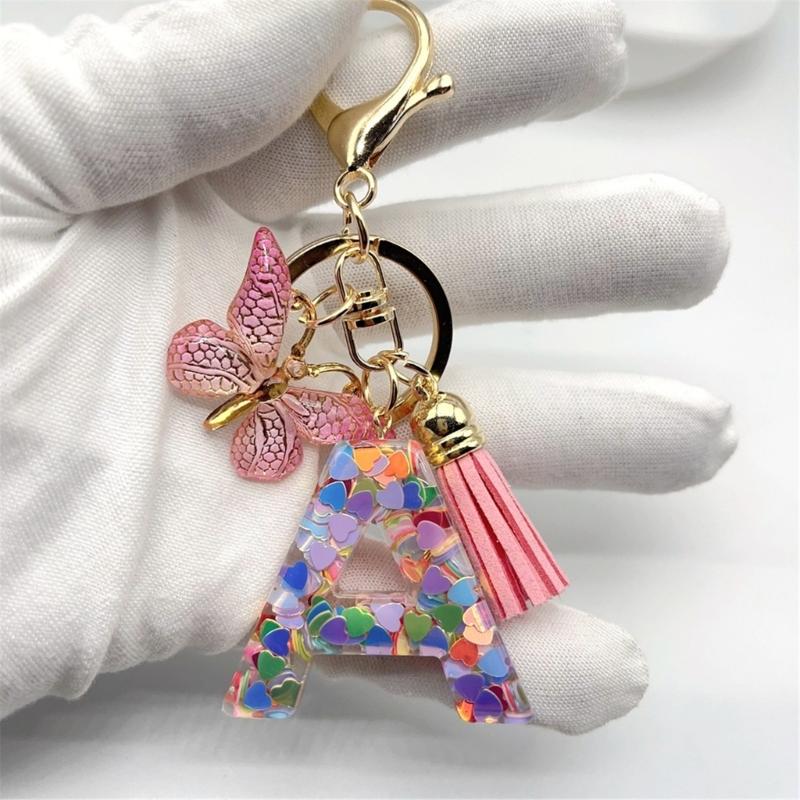 Quasten Schmetterling Anhänger Charm Schlüsselanhänger Bunte Herz Pailletten Initialbuchstabe Schlüsselanhänger für Rucksack Handtasche Autoschlüssel