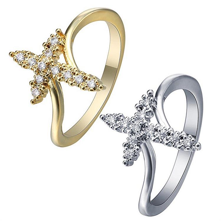 Geometric Cross Stunning Ring With Inlaid Zirconia Stones Engagement Gift For Couples Fashionable Hand Accessory European Am And