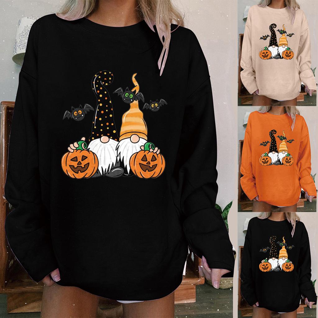 Lustige Halloween-Druck-Langarmbluse für Damen, lockere Pullover-T-Shirt-Oberteile