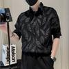 Stylish Jacquard Weave Basic Shirts Men's Clothing Solid Color Summer Business Casual 3/4 Sleeve Loose Turn-down Collar Shirts