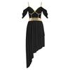 Damen Griechisch Römisches Königinnenkostüm Metallic Glänzend Patchwork Schulterfrei Asymmetrischer Saum Trägerkleid Halloween Party