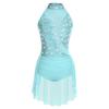 Damen Glitzernder Tanz-Leotard Ärmellos Rücken Ausgeschnitten Unregelmäßiger Rock Strass Applikation Lateinkostüm