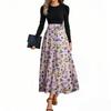 Damenmode Lässig Gürtel Langarm Rundhals Floral Bedruckt Elegant Temperament Kleider