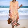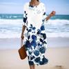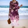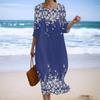 Damen Modisches Bedrucktes Rundhals Siebenviertelärmel Lockeres Kleid