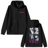 Japanischer Anime Schwarzer Stein Reißverschluss-Hoodie Herren und Damen Manga Retro Extra Große Reißverschlussjacke Herren und Damen Reißverschluss-Sportbekleidung
