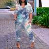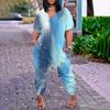 Damen-Overall in Übergröße, lockerer, lässiger Kurzarm-Jumpsuit mit V-Ausschnitt und bedruckten Taschen