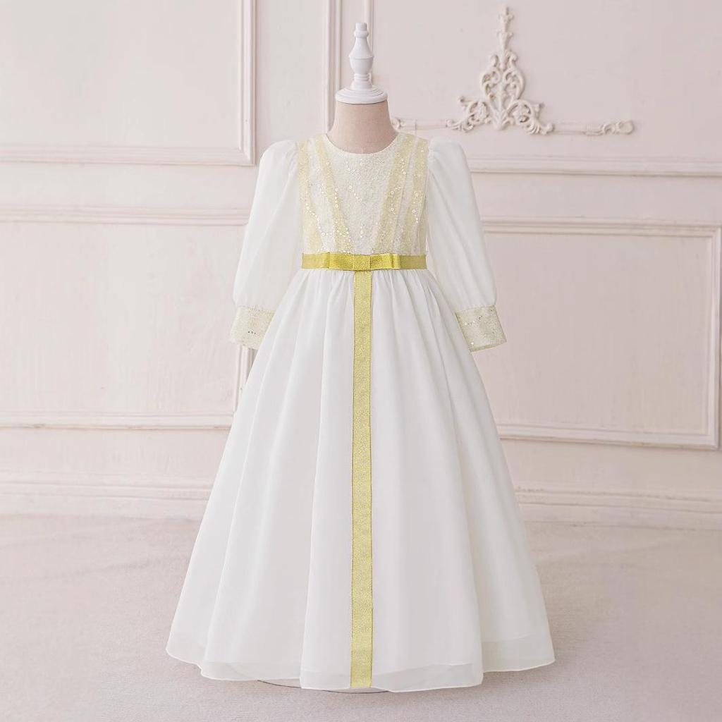 Orientalisches Weißes Chiffon Muslimisches Ballkleid mit Stickerei und langen Ärmeln