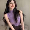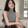 Damen Hot Girl Rollkragen Strick Camisole Sommer Grau Ärmelloses Tanktop Dehnbar Slim Fit Futter Top