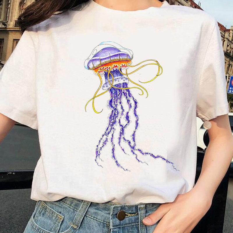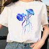 Aquarell Quallen Design T-Shirt Damen Druck Harajuku T-Shirt O-Ausschnitt Damen Shirt Ärmel Damen Grafik Damen T-Shirt