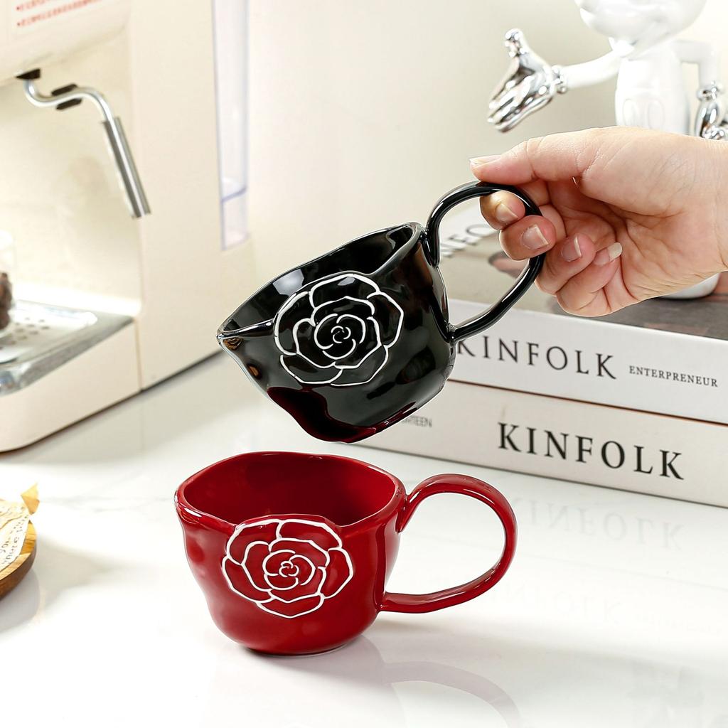 Kamelienbecher Designgefühl Hoher Henkel Wasserbecher Schlichtes Zuhause Büro Kaffeetasse für Männer und Frauen Keramiktasse