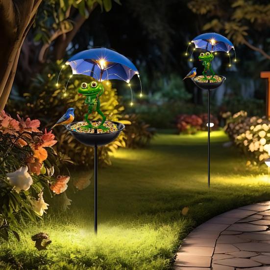 Yousheng Solar Vogelfutterhaus Frosch Gartenfigur mit beleuchtetem Schirm Outdoor Schildkröte Solarleuchte Kolibri-Futterhaus mit Stab für Hofkunst Rasen