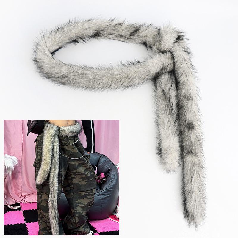 Unisex Winter Schal Hiphop Simulationsfell Taille Straße Lang Fell Taillenband Vintage Gürtel Taillen Accessoires Tanz Länge 180cm