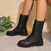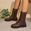 Herbst Damen Mid-Calf Stiefel Große Größe Seitenreißverschluss Britischer Stil Retro Runde Spitze Ritterstiefel Lässig Einfarbig Kurze Stiefel