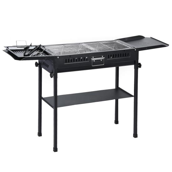 Langer Grill Holzkohle Großer BBQ Grill Klappbare Seitenablage Camping Grill für Garten Hinterhof Party Picknick Kochen (47.28x25.61x25.61 Zoll)
