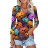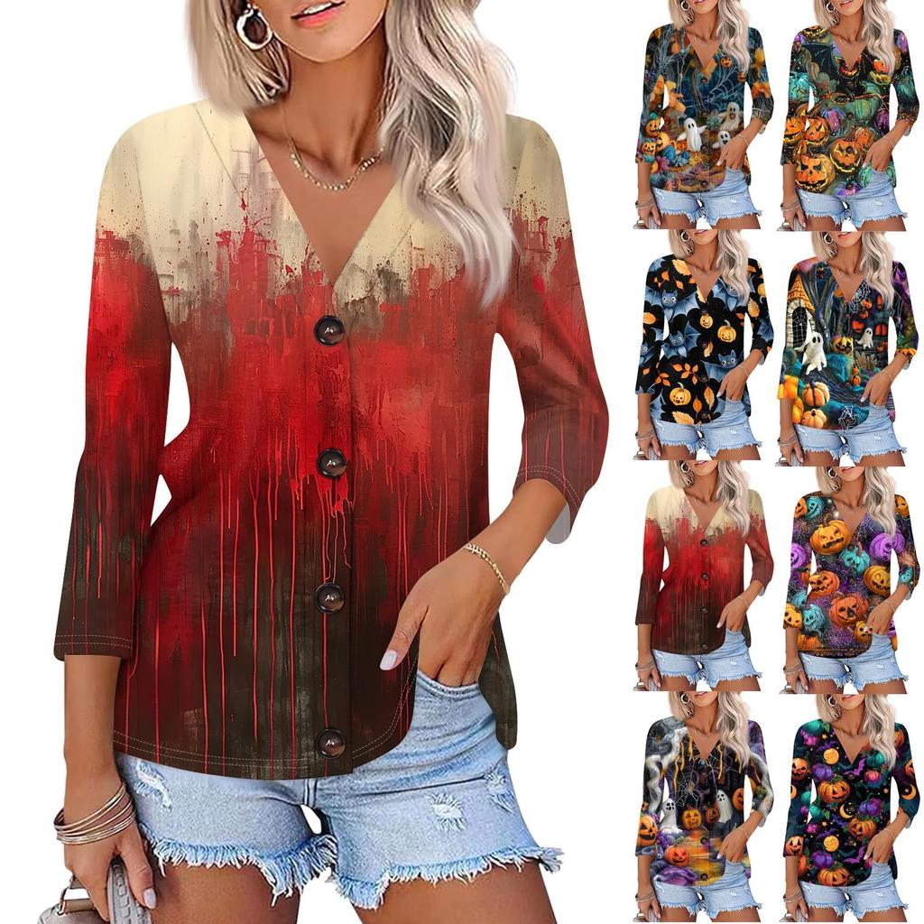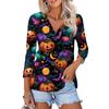 Damenmode Lässiges bedrucktes Button-Down-Hemd 3/4 lange Ärmel Oberteile