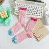 Summer Thin Mid-calf Socks, Women's Mesh Hollowed-out Color-blocking Pile Socks, Dopamine Color Series, Cute Long Socks for Girls, Trendy