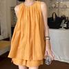 Sommer Stilvolle Falten Passende Sets Ärmellos Locker O-Ausschnitt Zweiteiliges Set Basic Einfarbig Lässige Shorts Sets