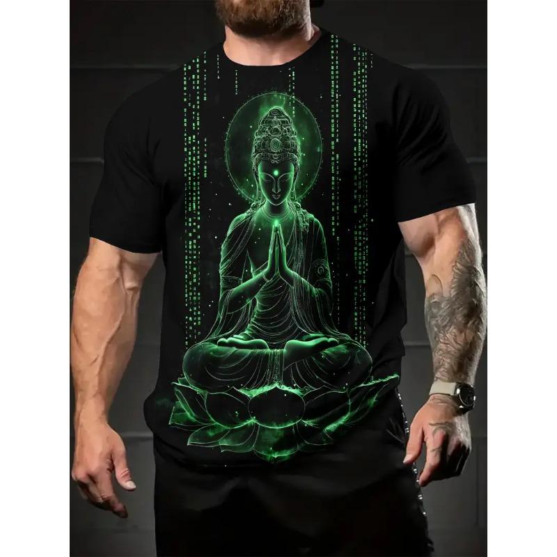 Large Men's Buddha Pattern 3D Printed Men's Round Neck Short Sleeved T-shirt Summer Fashion T-shirt Casual Comfortable Versatile Top