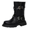 Schwarze Damen Stiefeletten Gummi Niedriger Absatz Motorradstiefel Braun Herbst Winter Schuhwerk Schuh Unisex Große Größe Wasserdicht