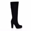 Damen Winterstiefel Mode Flock Knight Kniehohe Stiefel Frauen Schwarz Dicke High Heels Reißverschluss Runde Zehen Damen Schuhplattform