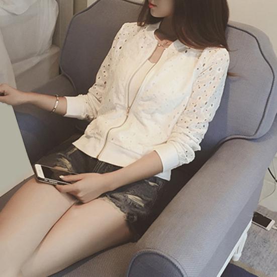 Dünne Spitzenjacke für Damen Stehkragen Reißverschluss Durchsichtig